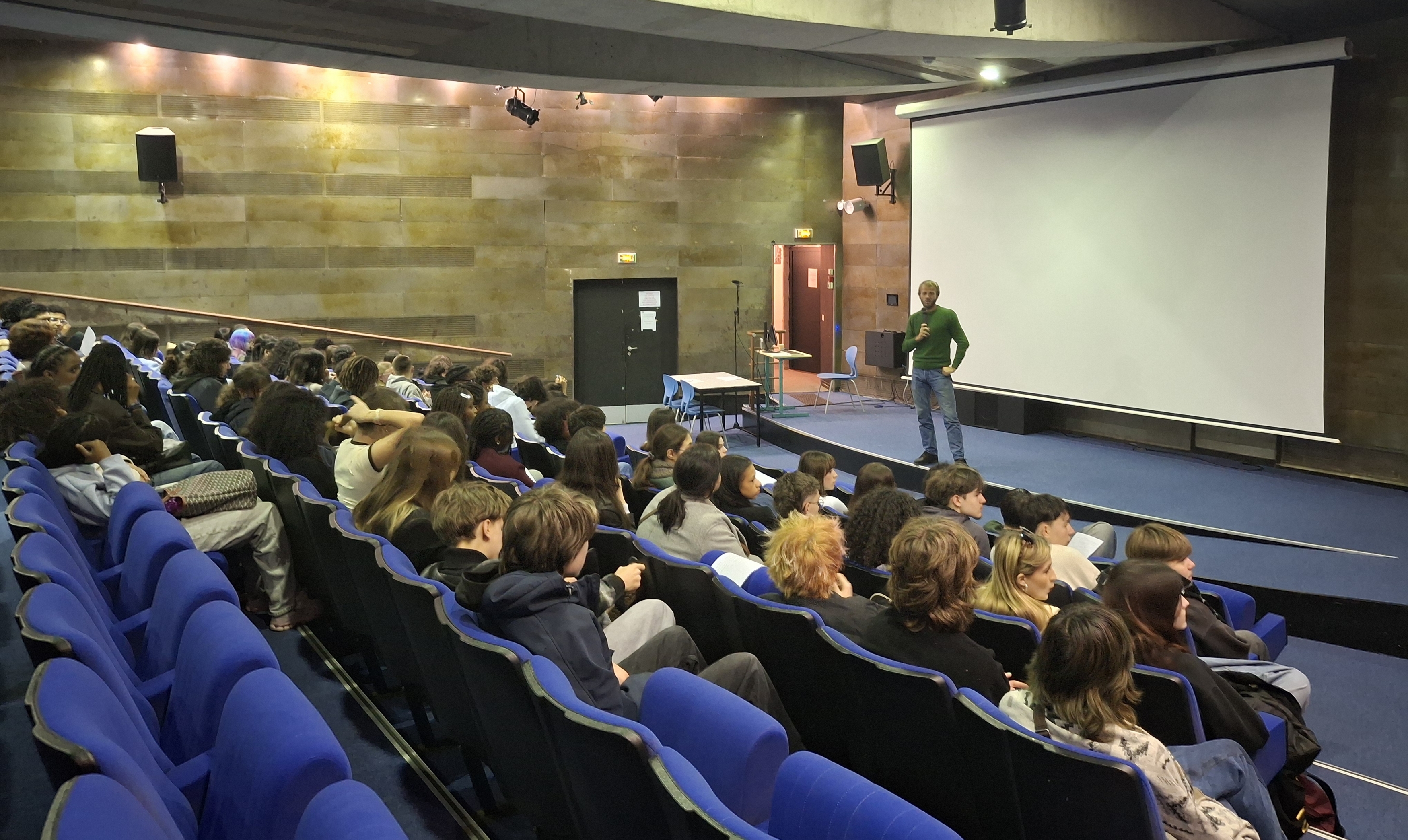 Dans le cadre du dispositif Prix Albert Londres au lycée , nous avons eu le plaisir de recevoir le journaliste reporter Julien Goudichaud , réalisateur du film Calais-Douvres , l'exil sans fin , en lice pour le Prix Albert Londres 2025 et actuellement visible sur la chaine parlementaire LCP.